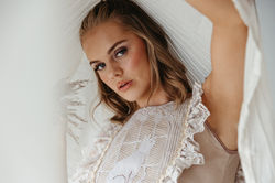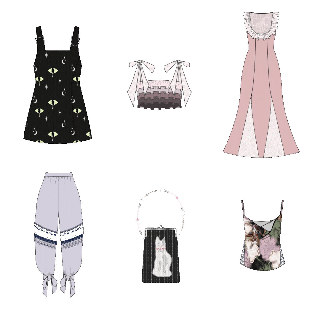 The first chapter drifts into the weightless world of early dreams—floating and tender, where the dreamer suddenly notices a mysterious cat on her windowsill. Here, silhouettes feel soft and lucid, inspired by the moments where time seems to slow, as if you’re wandering through the first layer of sleep. This collection draws inspiration from luxurious nightwear such as silk lace-trimmed nighties and bloomers, turning them into beautiful daytime wear for the romance seeker.
